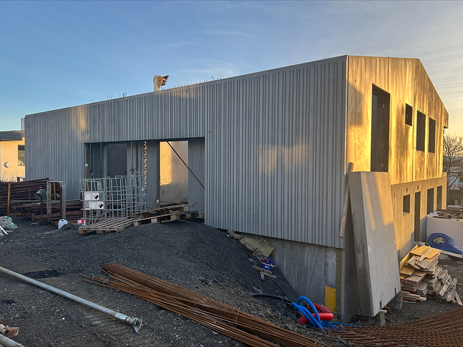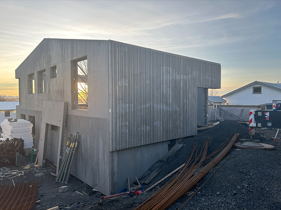 Uppkomið burðarvirki úr forsteypum einingum, gluggaísetning