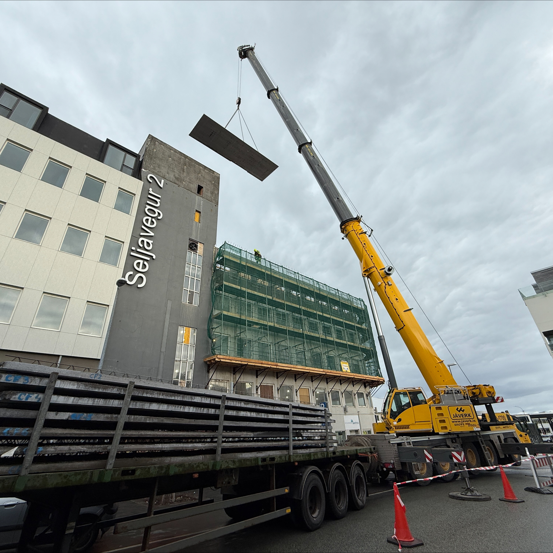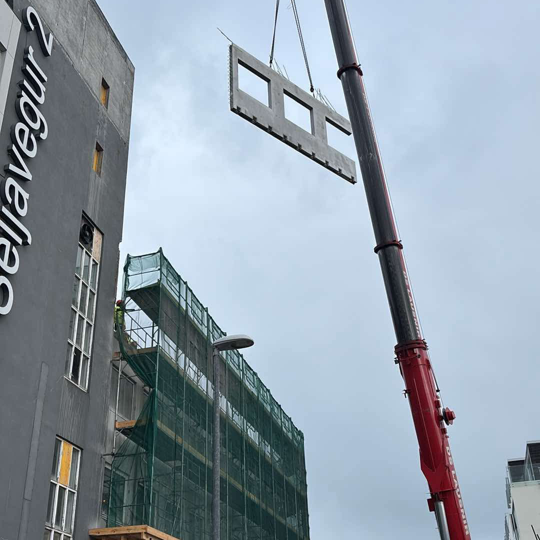 Breyting á eldra húsnæði. Efsta hæð rifin af, þrjár hæðir byggðar ofaná úr forsteyptum einingum, gluggaísetning, klæðning og allur frágangur innanhúss.